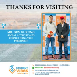 We were honored to welcome Mr. Dev Gurung, a prominent Social Activist and Former Vice President of NRNA, to Student Vibes Education.