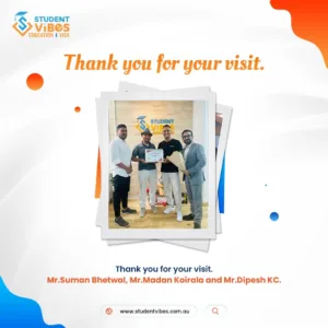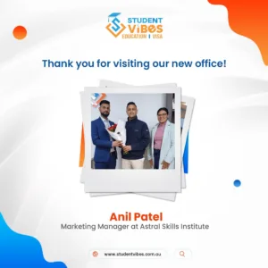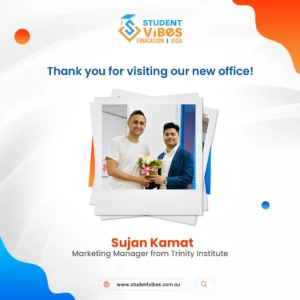 We were delighted to welcome Mr. Saugat Tripathi from Trinity Institute of Australia to our new office at Student Vibes Education.