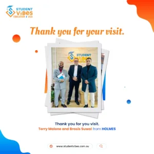 We were delighted to welcome Mr. Terry Malone and Brasis Suwal from Holmes Institute to Student Vibes Education.
