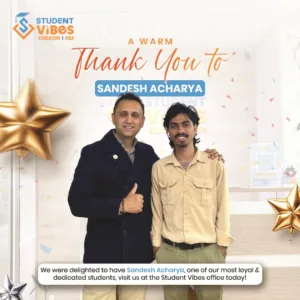 Your trust and journey with us inspire us to continue delivering the best guidance and support. At Student Vibes Education, we take pride not only in being a trusted consultancy but also in being a strong and reliable partner in our students’ success.
